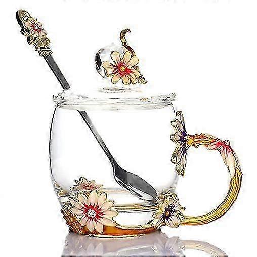 2025 Enamel Butterfly Flower Glass Coffee Mugs Tea Cup with Spoon