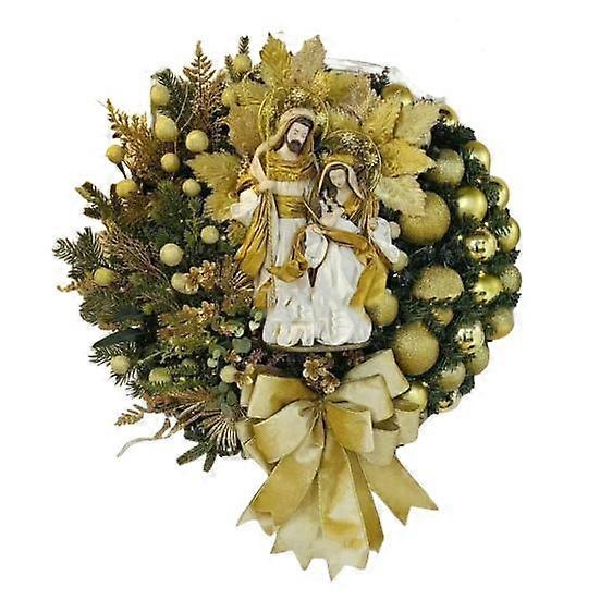 Lighted Nativity Scene Christmas Wreath Light Up Holy Family Jesus Figurine Wreath