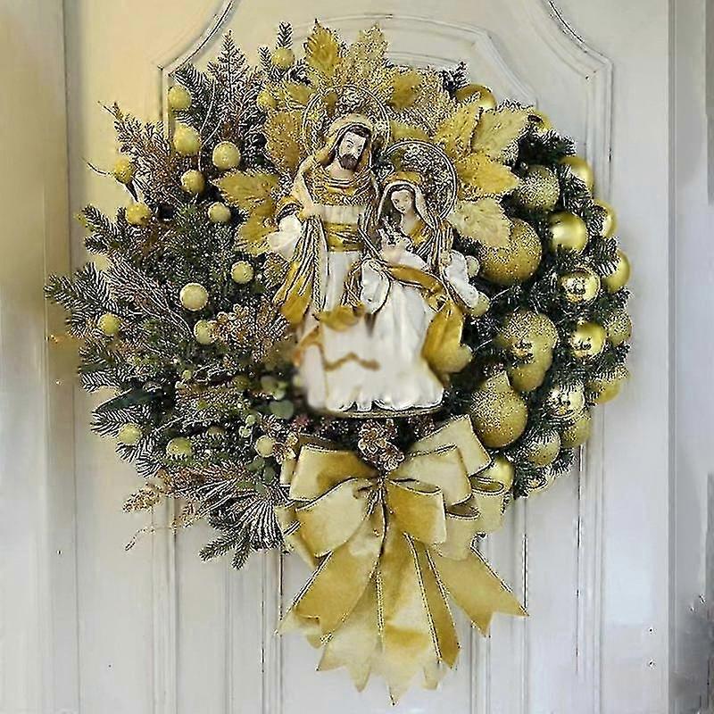 Lighted Nativity Scene Christmas Wreath, Christmas Ornament Decoration Sacred Xmas Wreath Decor C