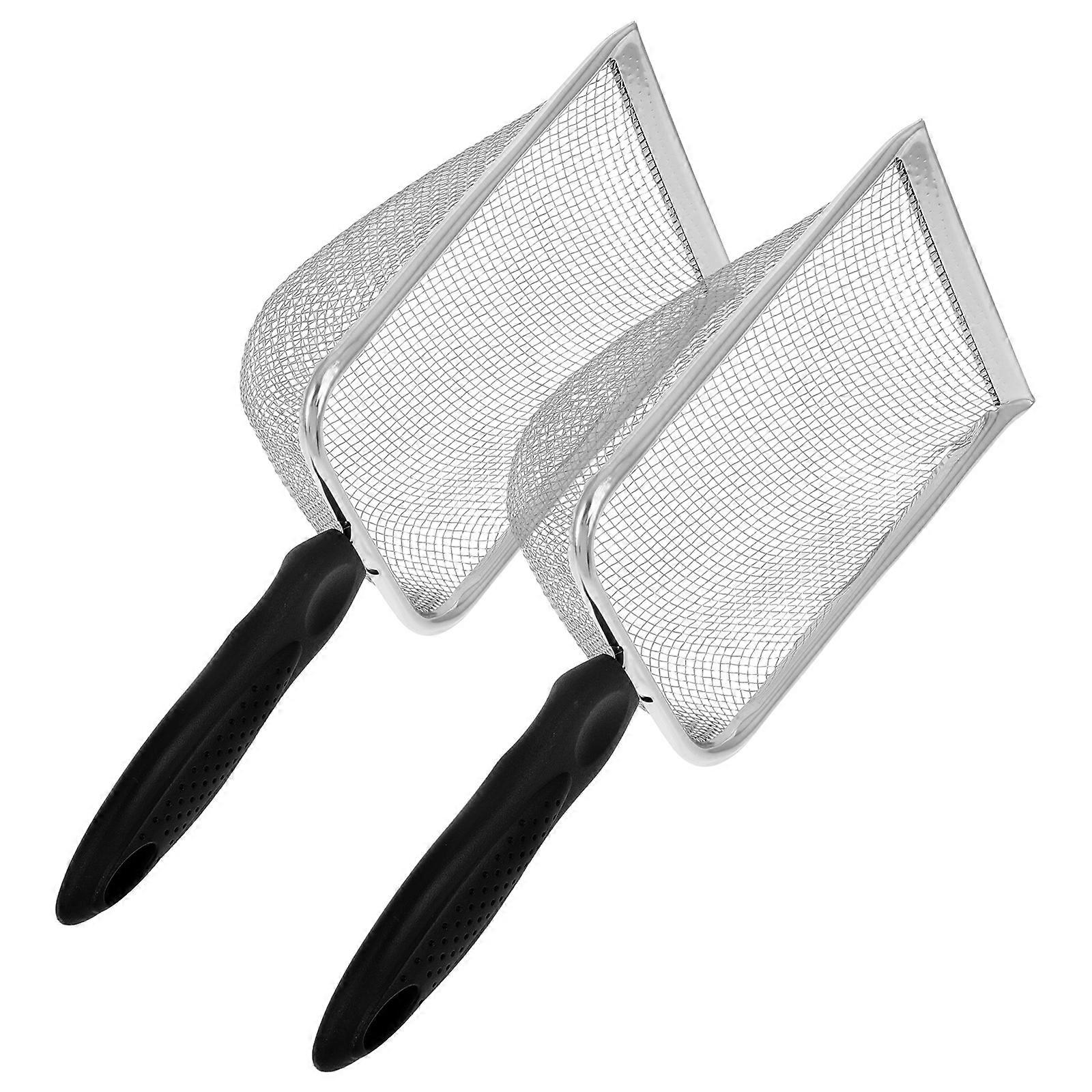 Stainless Steel Cat litter Scoop with Long Handle for Efficient Pet Waste Cleaning Black 2pcs