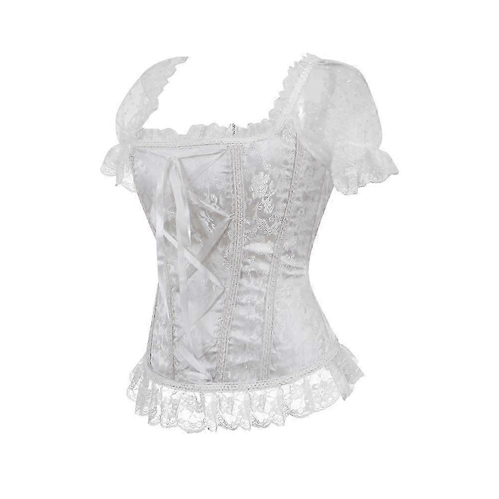 Sexy Gothic Princess Corsets with Short Lace Sleeves Off Shoulder Corset Lingerie Top Floral Vintage Overbust Bustier Tops S-6XL