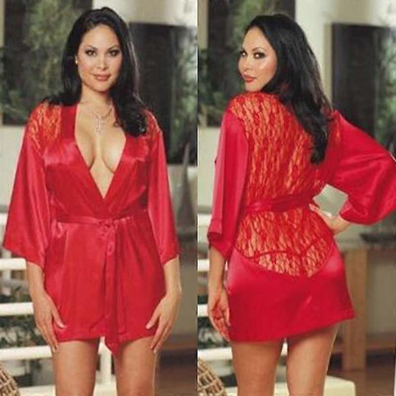 Sexy Silk Satin Lace Kimono Dressing Gown Bathrobe Women Nightwear