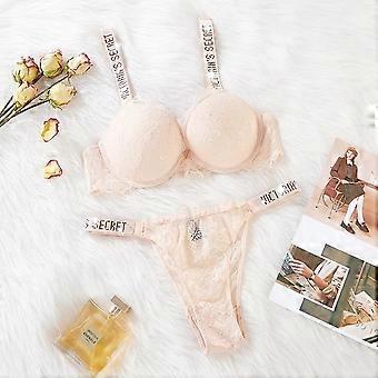 Sexy Women Lace Push Up Bra Set White rhinestone bralette Letter Pieces Intimate Suit Elegant Ladies Underwear