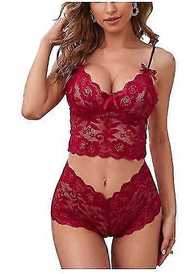Sexy Sheer Floral Lace Pajamas Lingerie Set High Waist Sleepwear Bra And Panty Nightwear