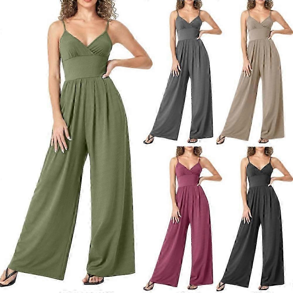 Women's V-neck Cami Wide Leg Jumpsuit Plus Size, Sleeveless Summer Outfits, Sexy Romper