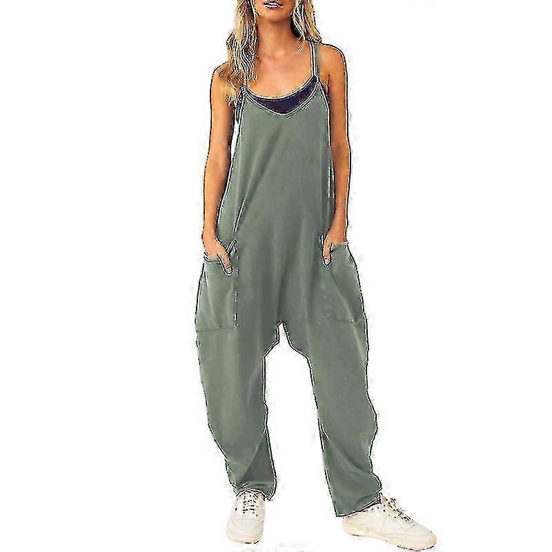 Summer Casual Jumpsuit Sleeveless Wide Leg Jumpsuit With Large Pockets Loungewear One Piece Clothes 2025