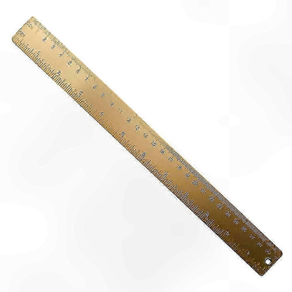 1. Clear and Precise: Precision-crafted brass ruler with clearly legible scale lines and values, minimal error. One side marked from 0 to 30 cm, the other side from 0 to 12 inches. 2. Durable and Sturdy: Made of quality brass with a polished surface, rounded edges, smooth finish, and corrosion-resistant for long-term use. 3. Material: Brass; Measuring Range: 30 cm / 12 inches. Includes a hanging hole at one end for easy storage. 4. Beautiful Design: Simple and elegant golden appearance, finely crafted, only 1.3 mm thick, suitable for measuring or as a bookmark. Ideal gift for kids, friends, and students.