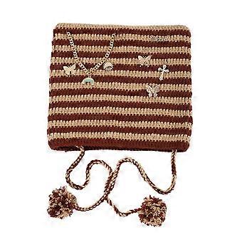 Knit Stripe Pattern Cat Ear Hat Elastic Windproof Hat with Pompoms Decor Ear Protector Hat Winter Cycling Skiing Hat brown card