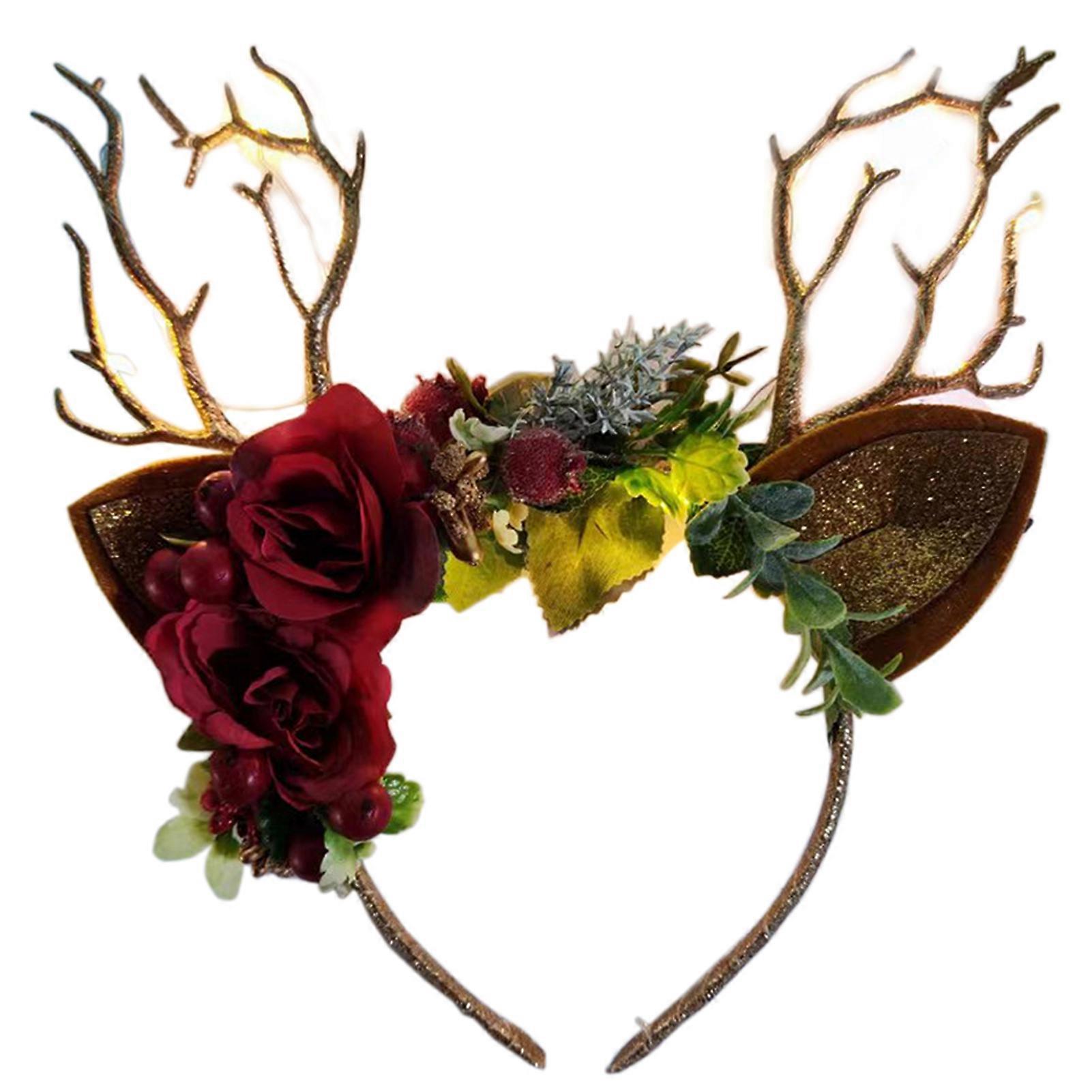 Reindeer Headbands Christmas Reindeer Antlers Headband with Flowers Girls Women Cute Hair Hoop
