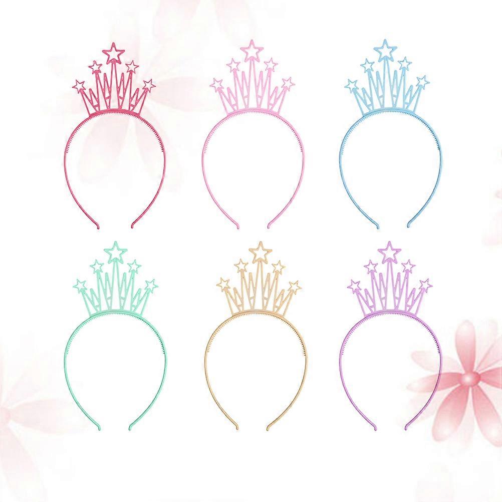 Kids Headbands Plastic Hair Bands Birthday Party Hollow Crown Pentagram Pattern 12Pcs