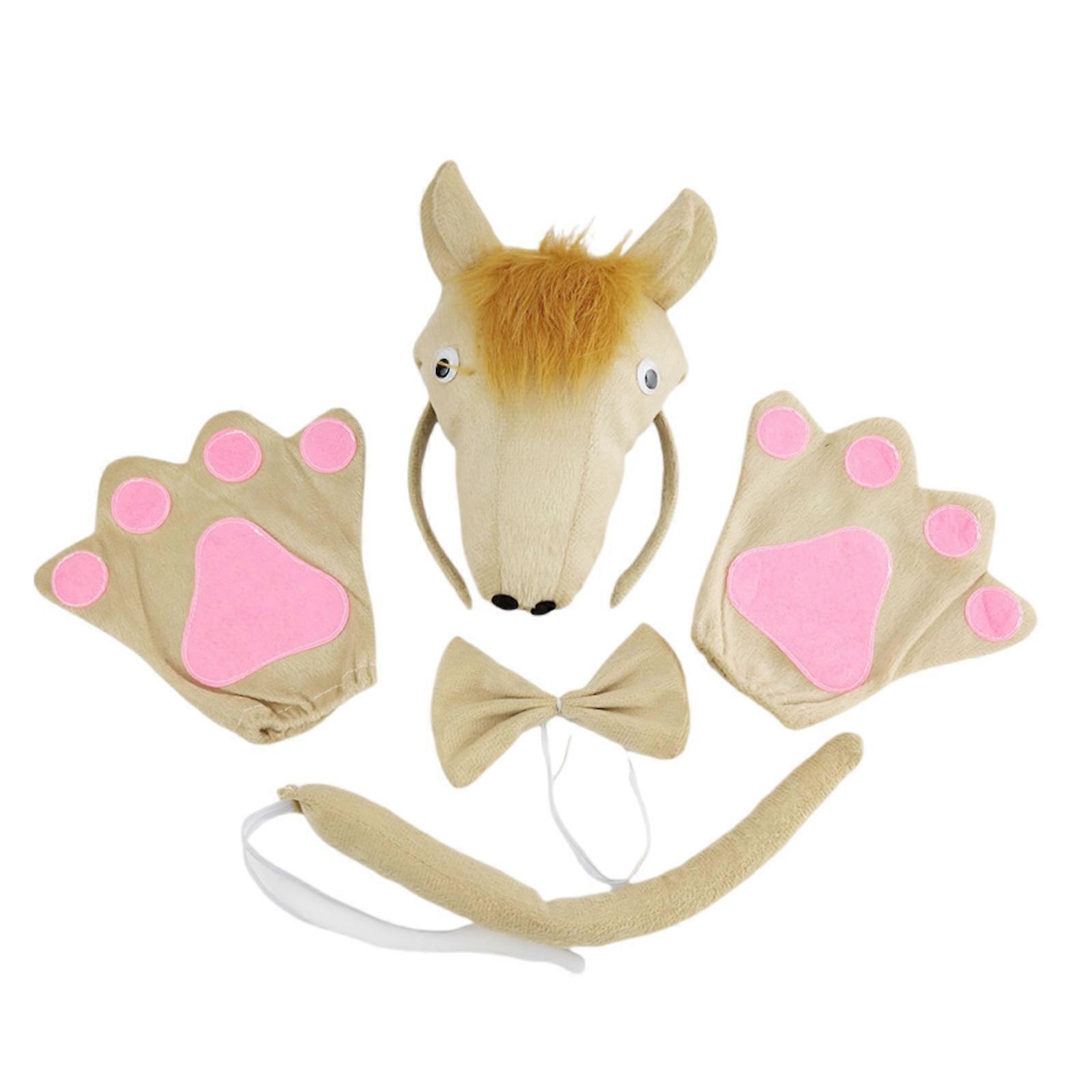 Cartoon Stuffed Horse Headbands with Bowtie/Tail Set Hair Hoop Animes Character Performances Live Broadcast Headpiece