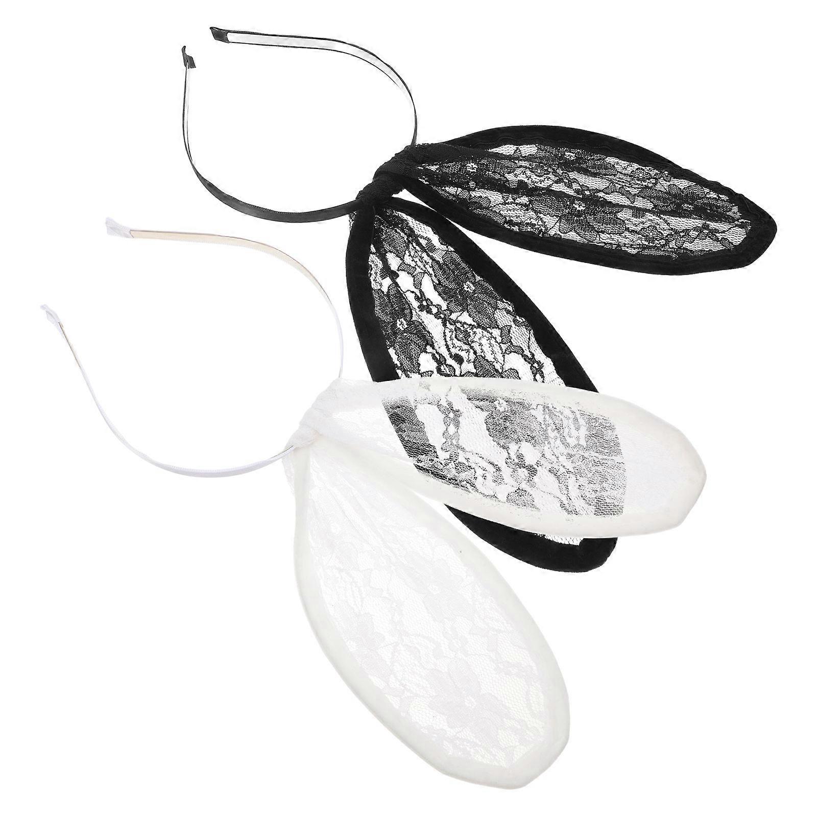 Rabbit Ears Headbands Lace Hair Bands for Party Use 6Pcs Assorted Color