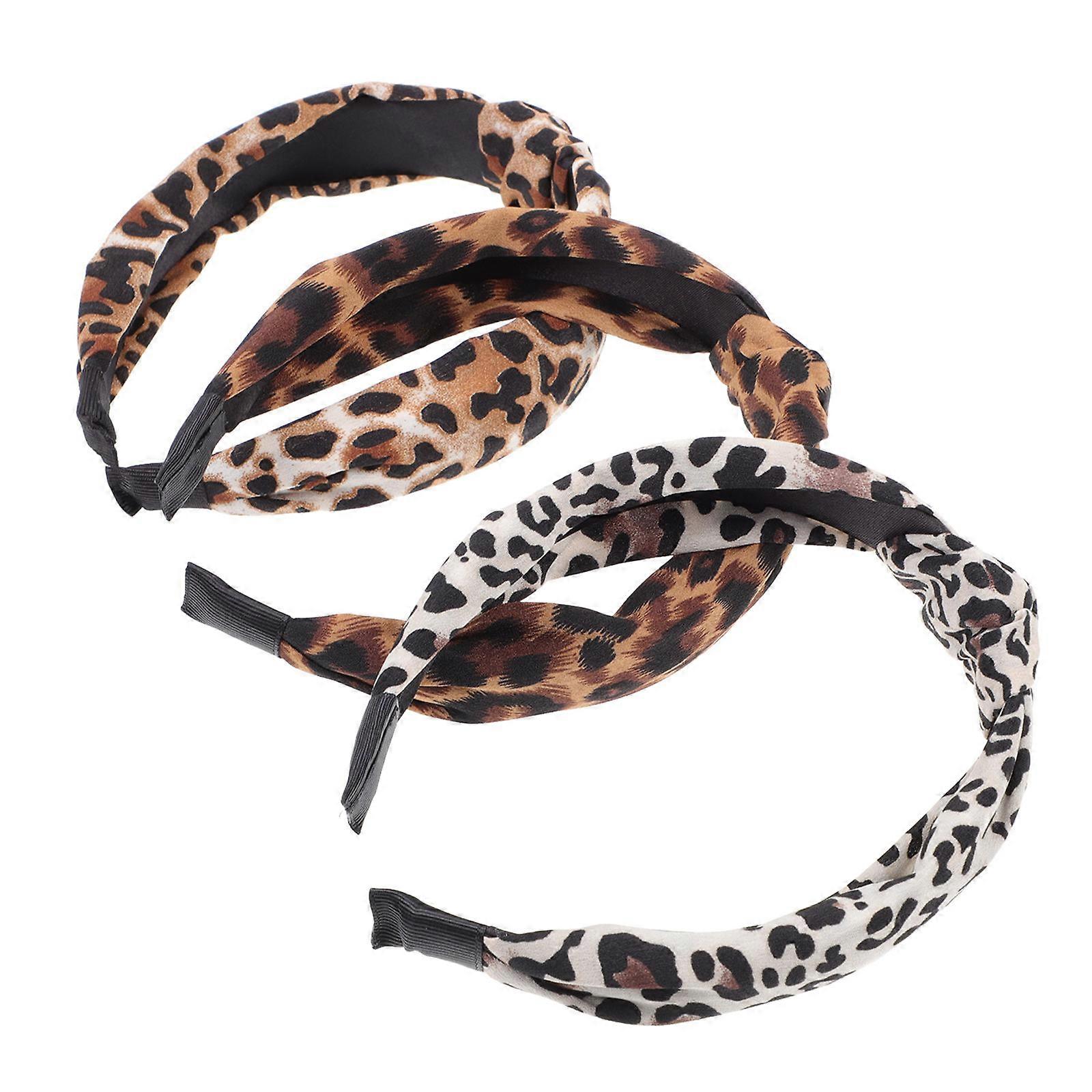 Knotted Headbands for Women's Hair Leopard Print Accessories Family Gathering 16x13cm Hold Hair in Place 3Set