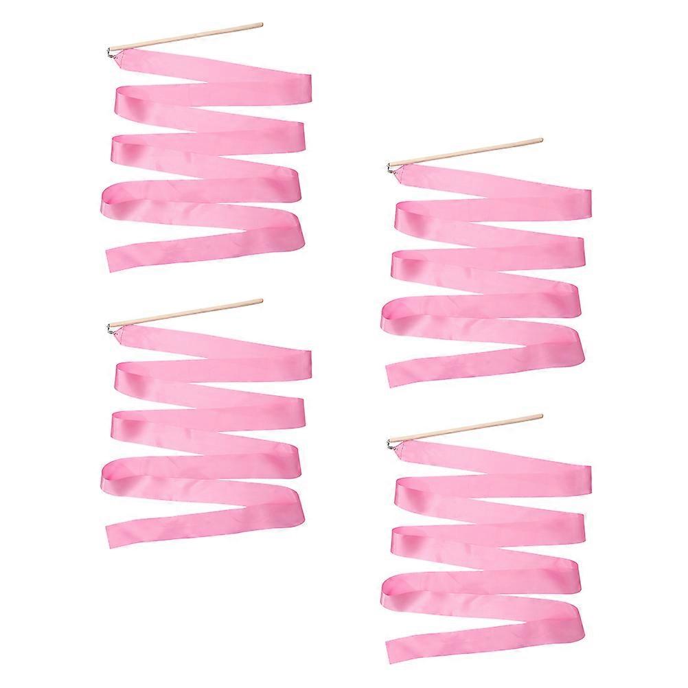 Pink Silk Rhythmic Dancing Ribbons for Kids Gymnastics Streamers Gift 4Pcs