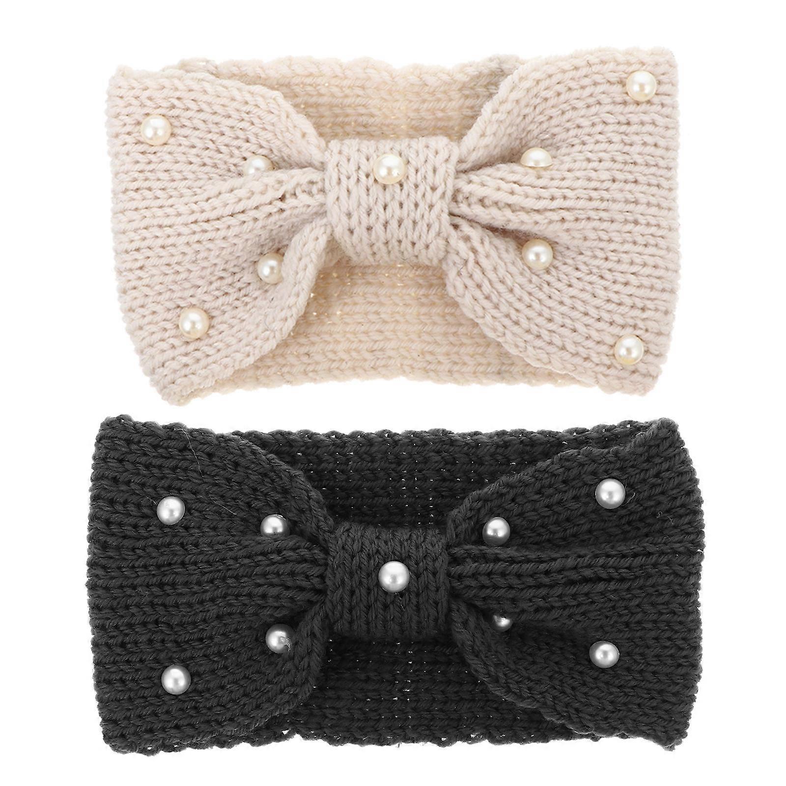 Hairbands Women Knitted Headband Bowknot Decorative Warmth Retention 18.5x10.5cm Wool 2Pcs