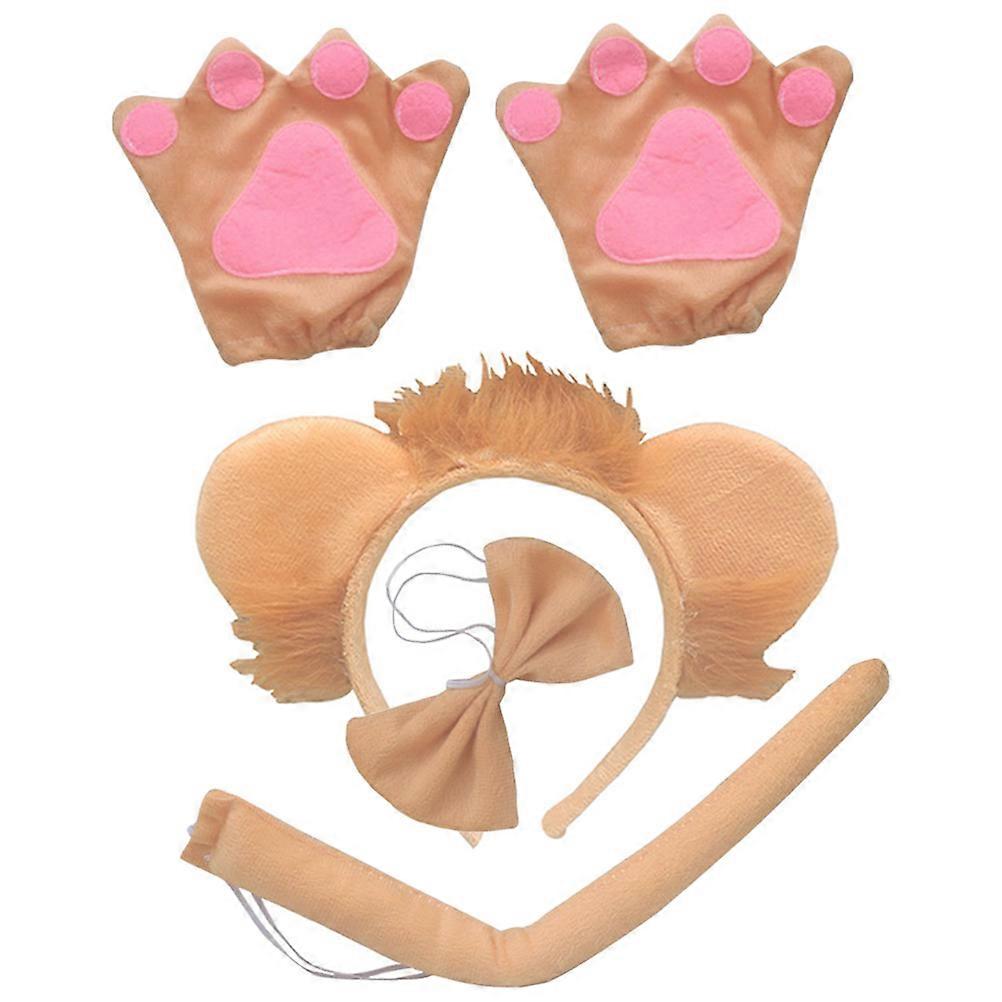 Lion Ear Headband Cosplay Decor Accessory with Bowknot and Tail 1Set