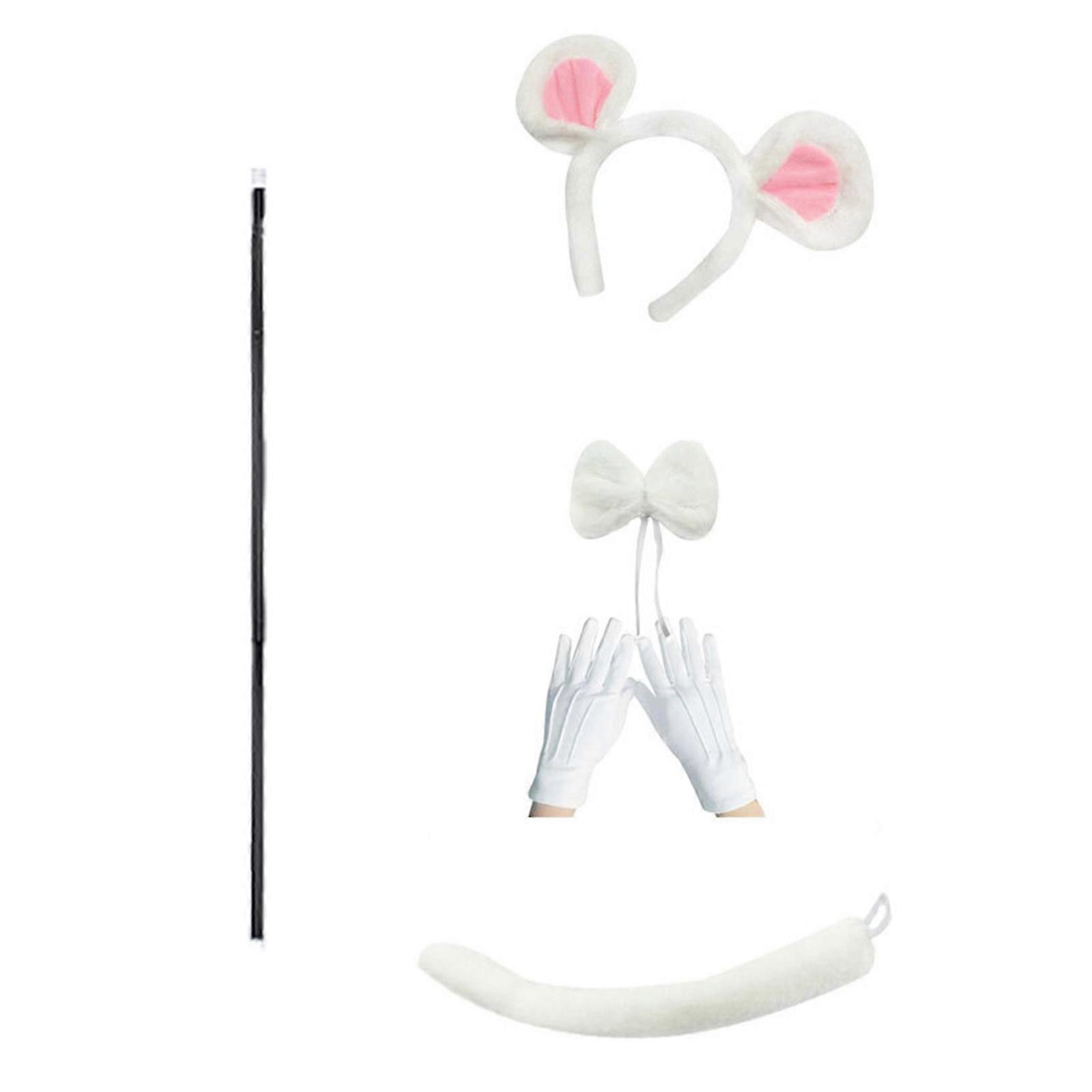 Mouse Ears Headband Tail Blind Cane Bowtie Sunglass Mouse Costume Accessories Set Halloween Costume Cosplay Party Props Multicolor
