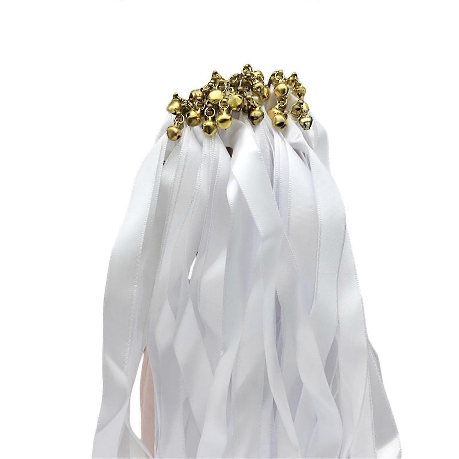 White Ribbon Fairy Stick Wedding Twirling Streamers with Gold Party Favors