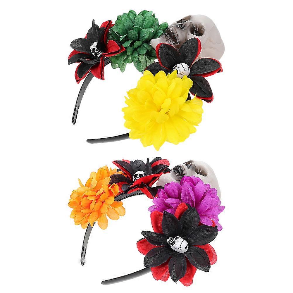 Halloween Headband Skull Rose Flower for Decoration 4Pcs Day of The Dead