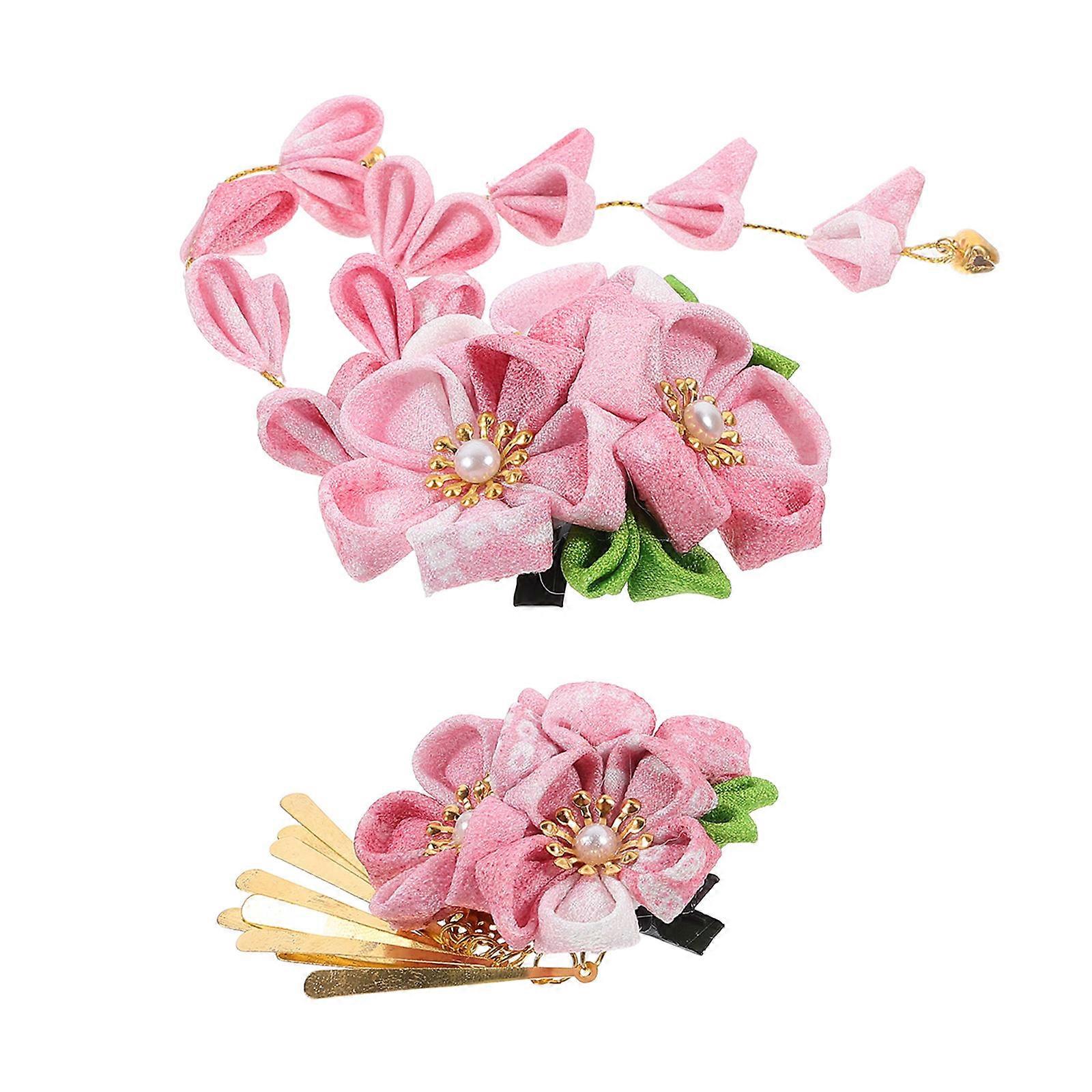 Women Hair Decoral Fabric Floral Headband for Hair Decoration 2Pcs Pink