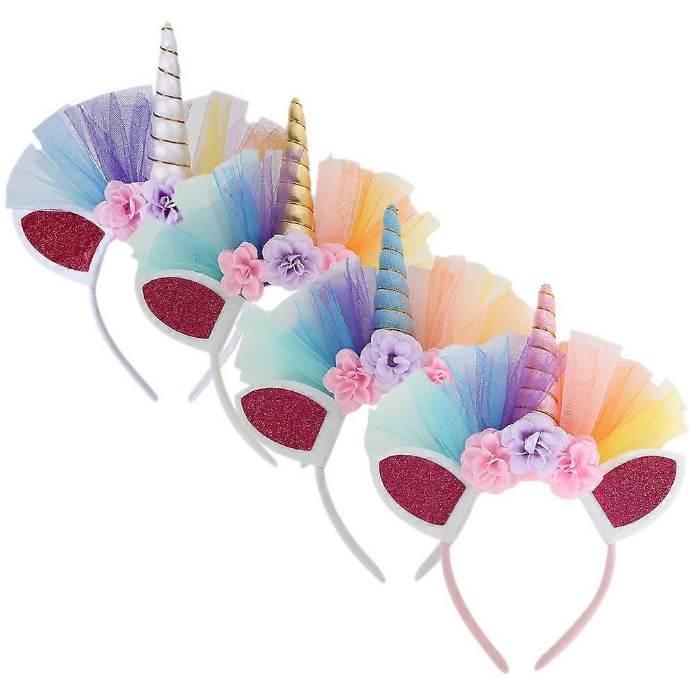 Cartoon Mesh Headband Unicorn Hairband for Kids Party 16Pcs