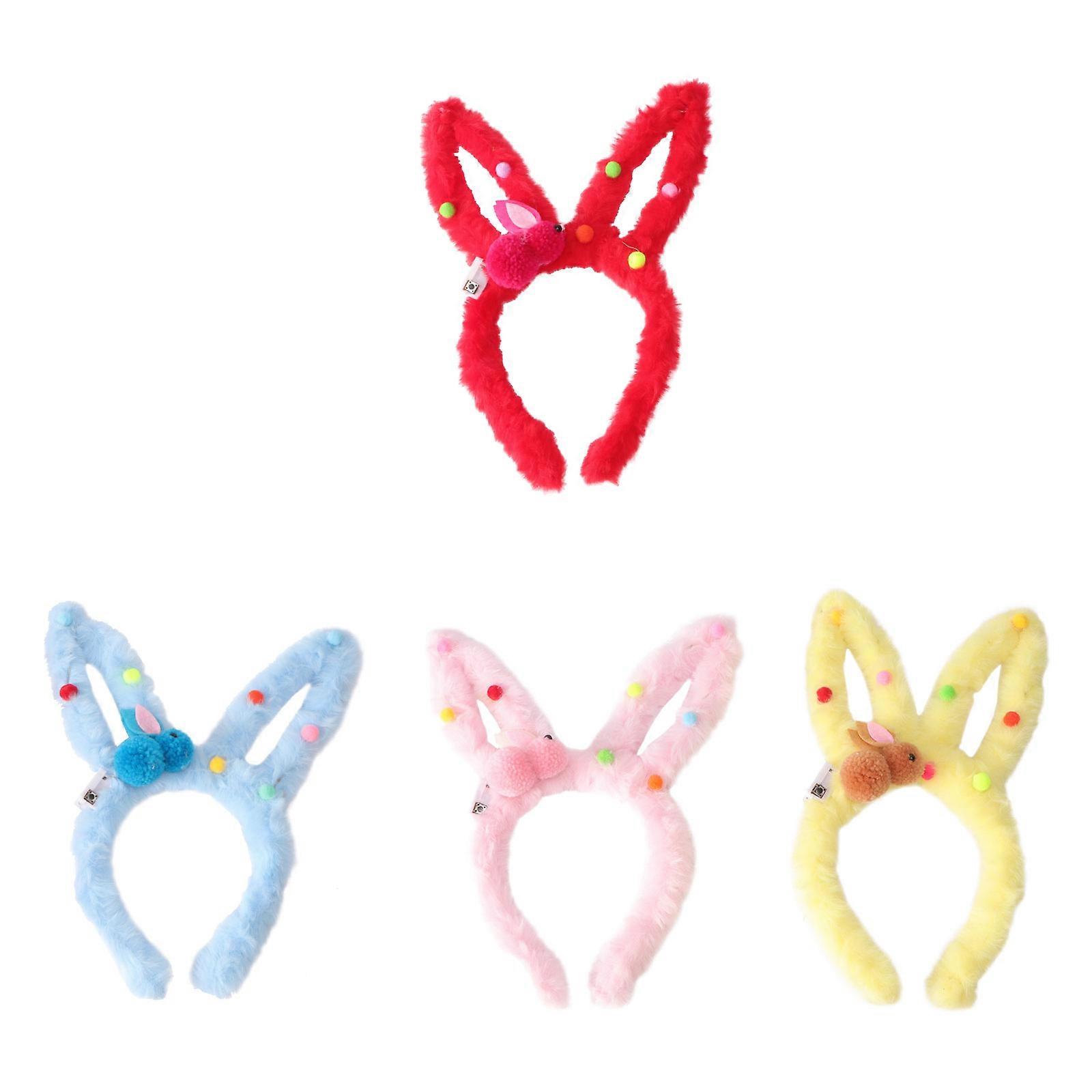 Cute Cartoon Headband Easter Celebration Plush Rabbit Ear Shape Headdress Kids Party Photo Prop 4Pcs