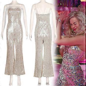 Movie Margot Robbie Cosplay Costume Adult Women Retro Jumpsuit Halloween Shiny Sexy Party Stage Bodysuit Carnival