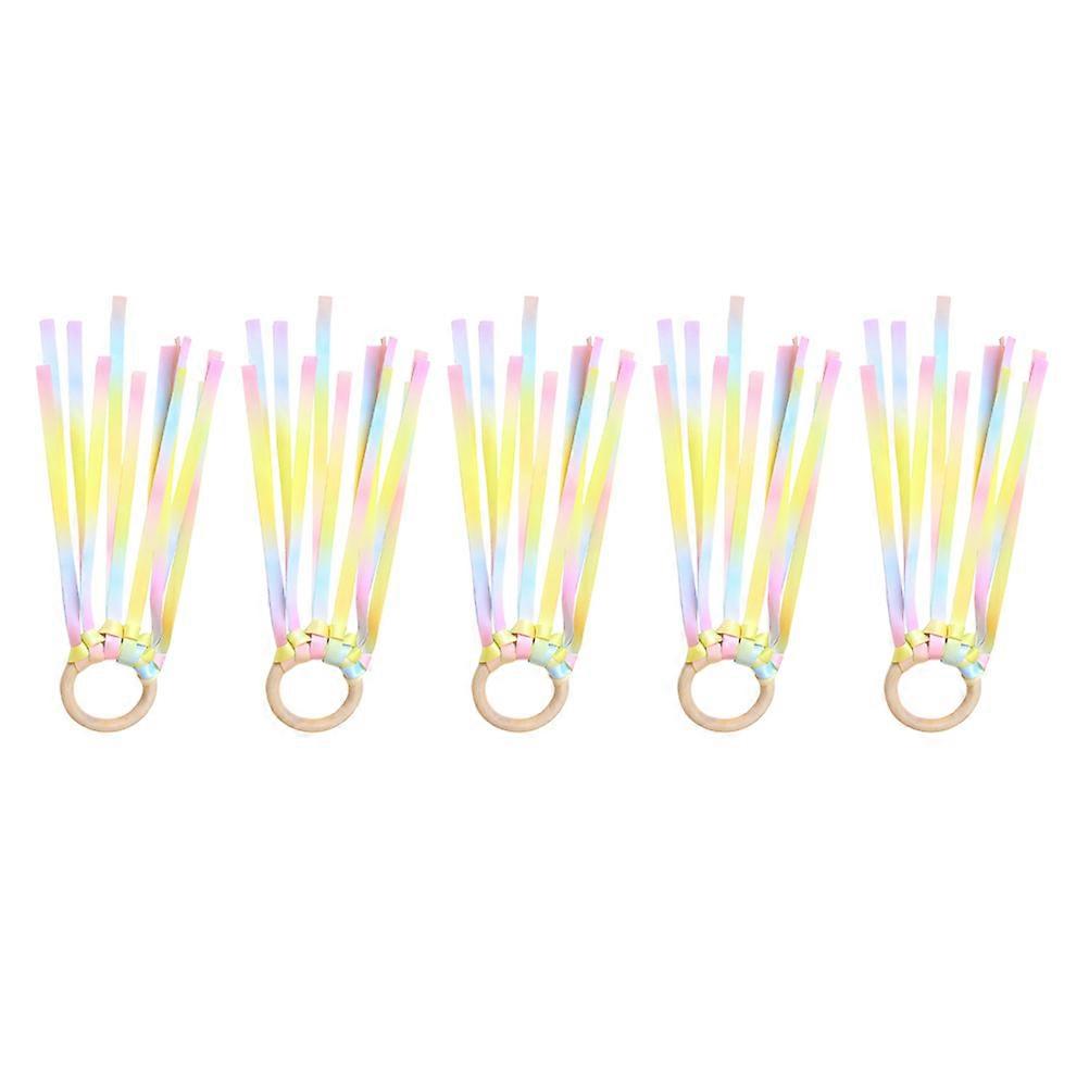 Dancing Silk Ribbon Wooden Round Handle for Rhythmic Dance 5Pcs Set