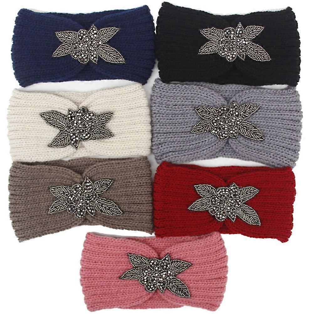 Knitted Headband Woolen Yarn Hair Hoop Winter Warm Flower Pattern Headdress Simple Design Light Grey 1Pcs