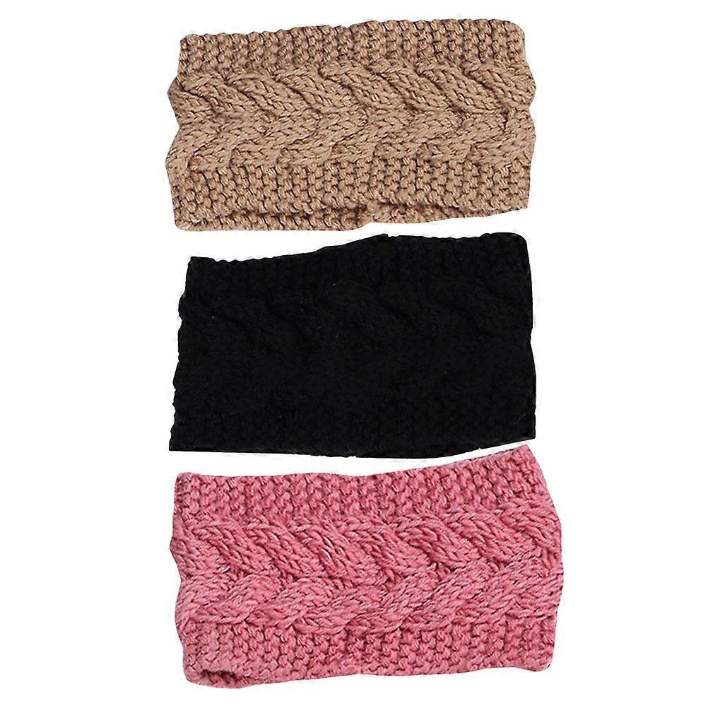 Hand-Knitted Soft Headband Knitted Headband For Women Prevent Hair From Getting Wet Wide-Edged Hairband Black 3Pcs