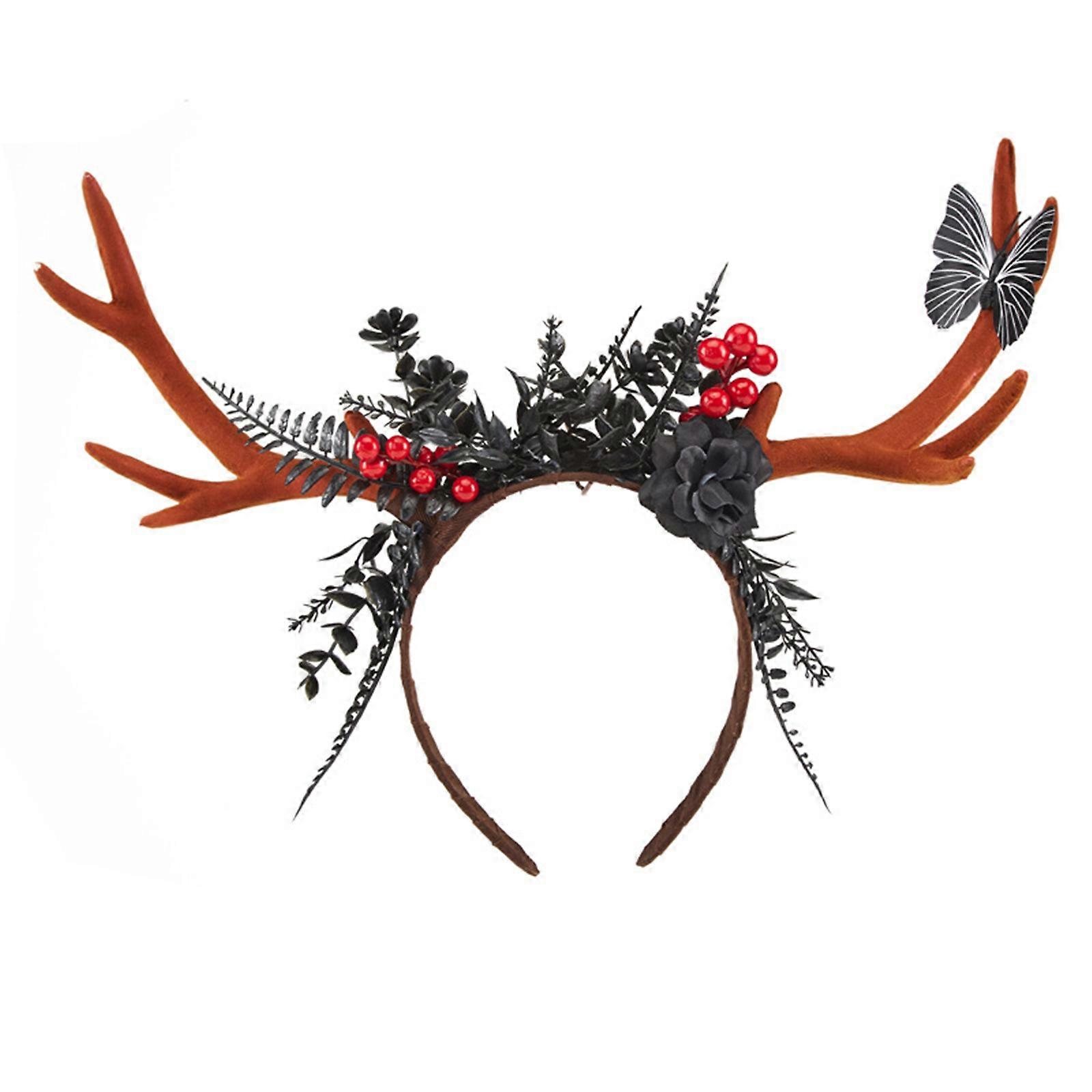 Punk Headband Reindeer-Horns for Girls Birthday Theme Parties Photo Props Antlers Headband Black Horn Hair Hoop Red