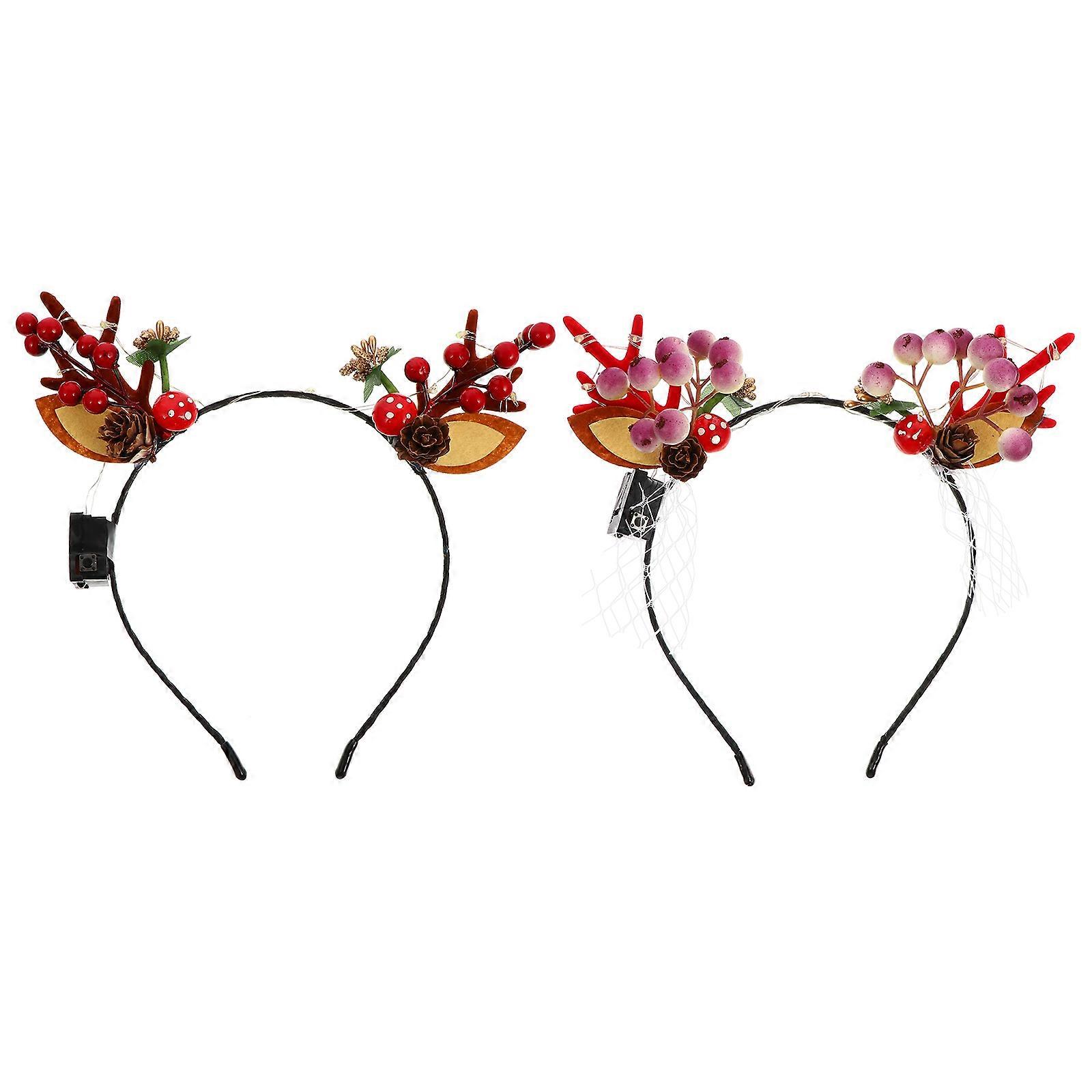 Luminous Antler Headband Light Up Reindeer Headbands Girls Women Headdress Christmas 20X18cm 2Pcs