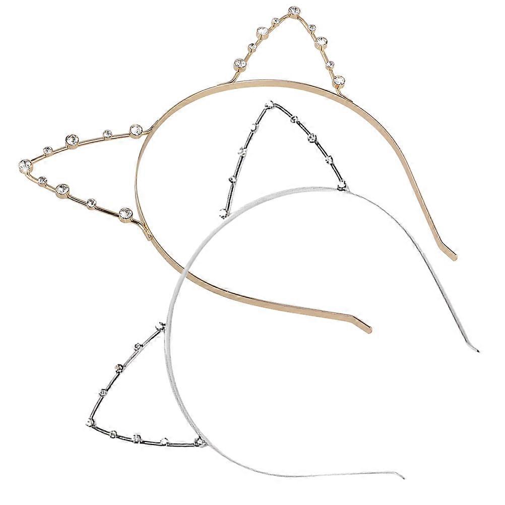 Charming Cat Headband Crystal Rhinestone Metal Women Girls Party Masquerade 17X17Cm 2Pack
