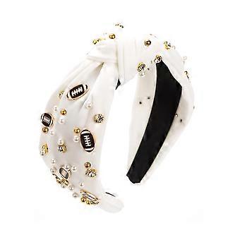 Fun American Football Headband Pearl Rhinestone Embellished Knotted Head Band Hair Hoop Wide Top