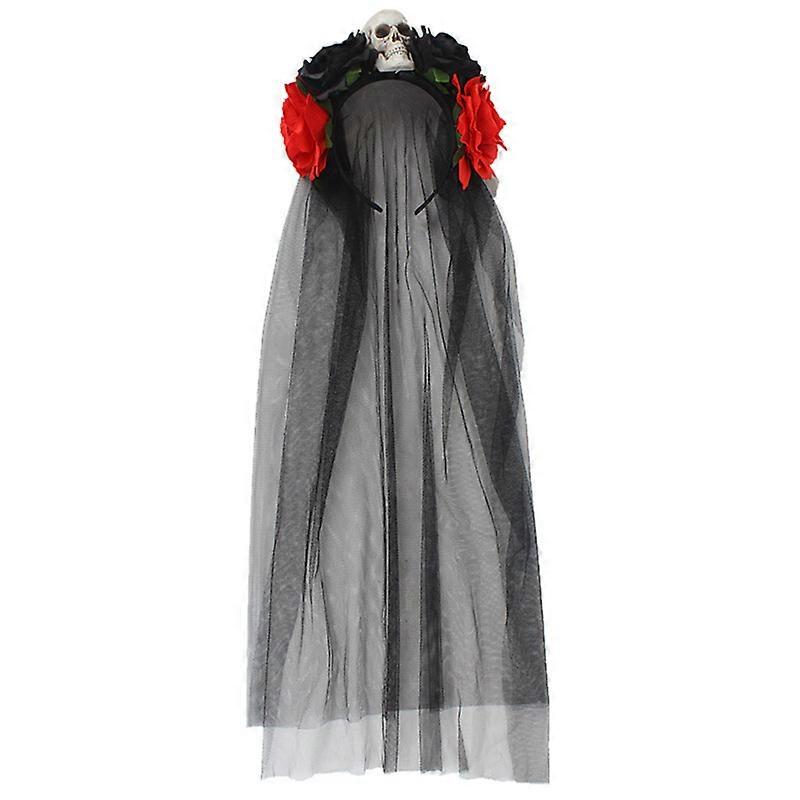 Halloween Headband Day of The Dead Rose Headdress Festival Headpiece Cosplay with Skull, Halloween Floral Headband Women Ladies Adults Halloween Fancy