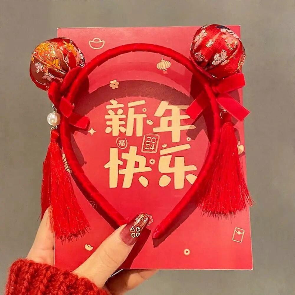 Chinese New Year Headband Red Hair Band Tassel Red Bow Hair Accessories for Children Women Festival Headwear