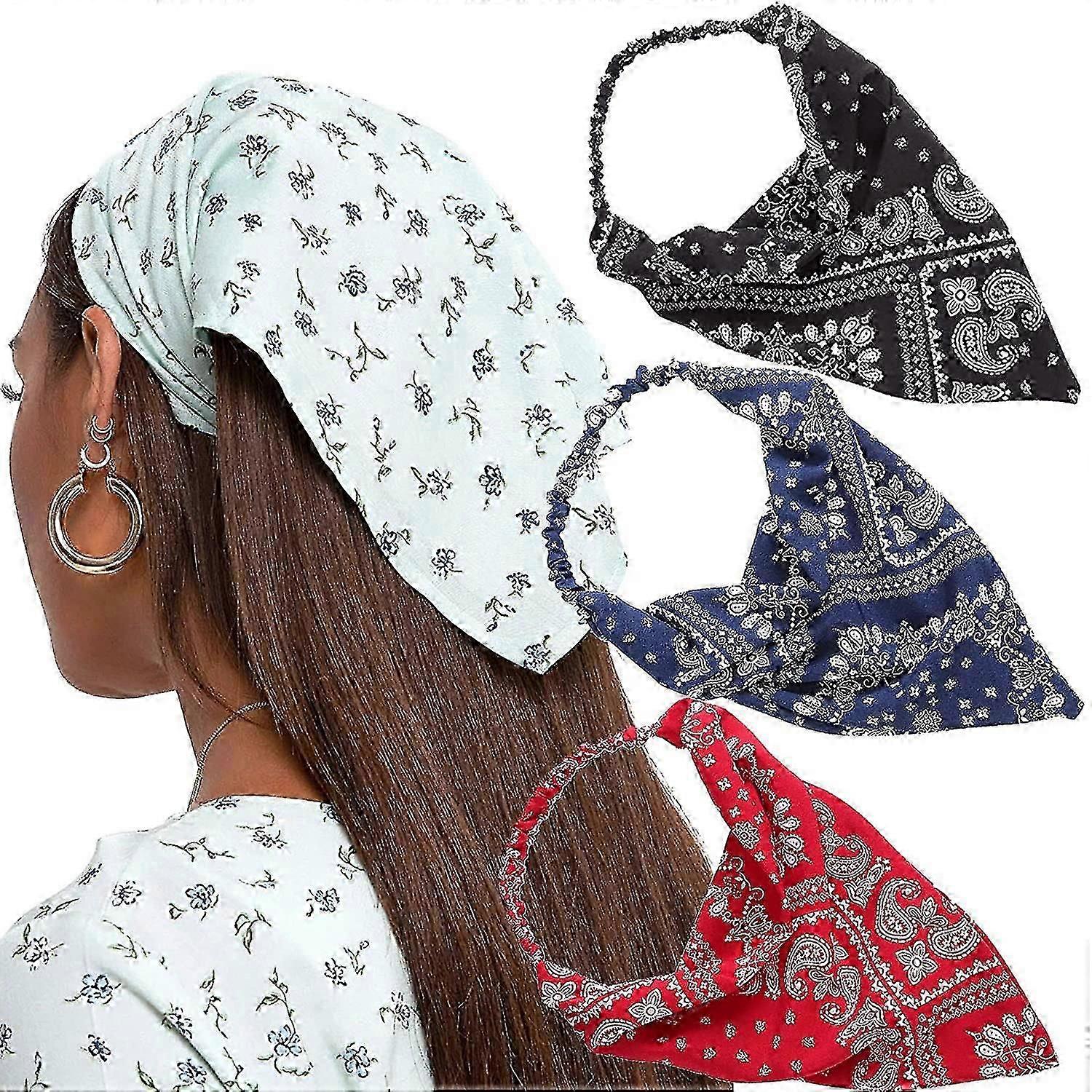 Floral Elastic Hair Scarf Headband - 3 Pcs Head Kerchief Headband