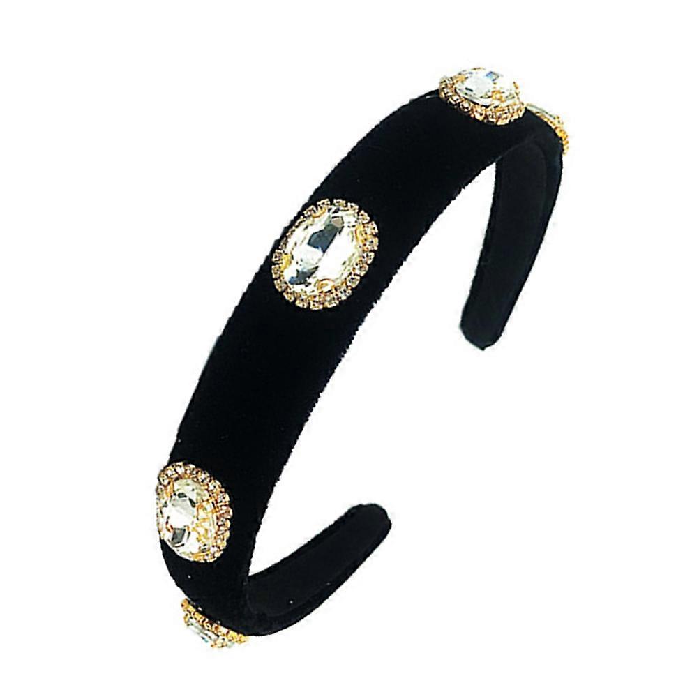 Non-Slip Wide Hard Headband Rhinestone Hairband Banquet Bridal Headdress Alloy Velvet Material 1Pcs