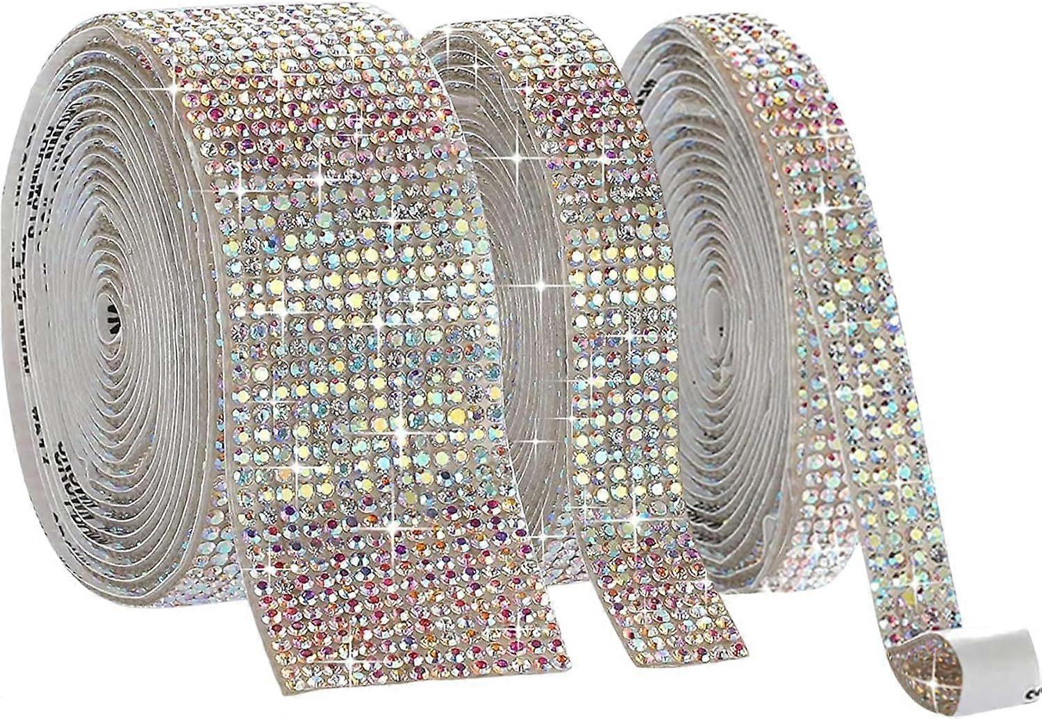 Amazleer Self-Adhesive Crystal Rhinestone Diamond Ribbon 3 Rolls 3 Yards Each 2 mm Rhinestones for DIY Crafts Events Car Phone Decoration (AB Crystal
