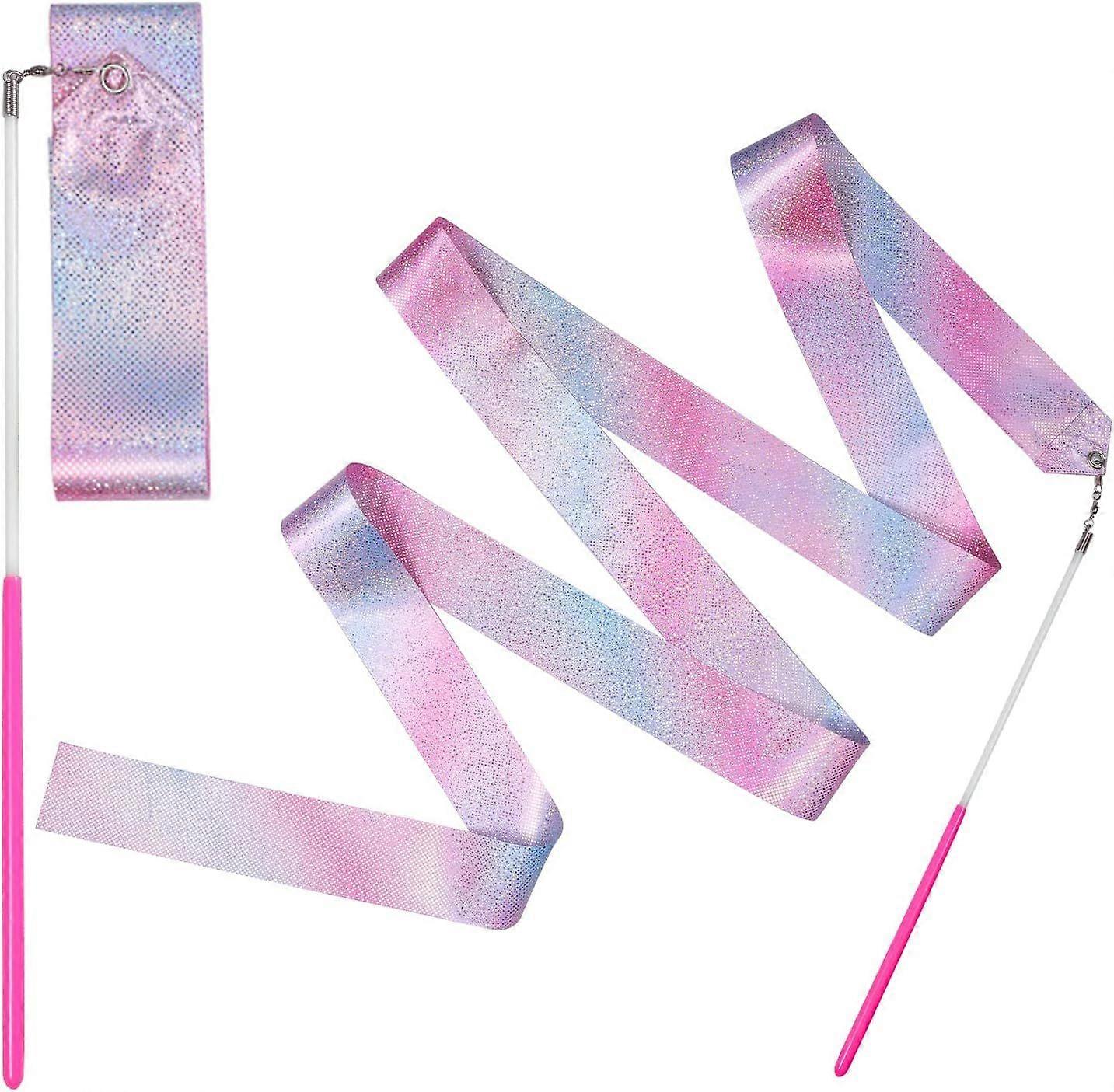 Glitter Dance Ribbon, 2 Pieces 2m Gymnastics Ribbon with Wand, Artistic Dance Ribbon for Kids Artistic Dance Training Birthday Party Gifts