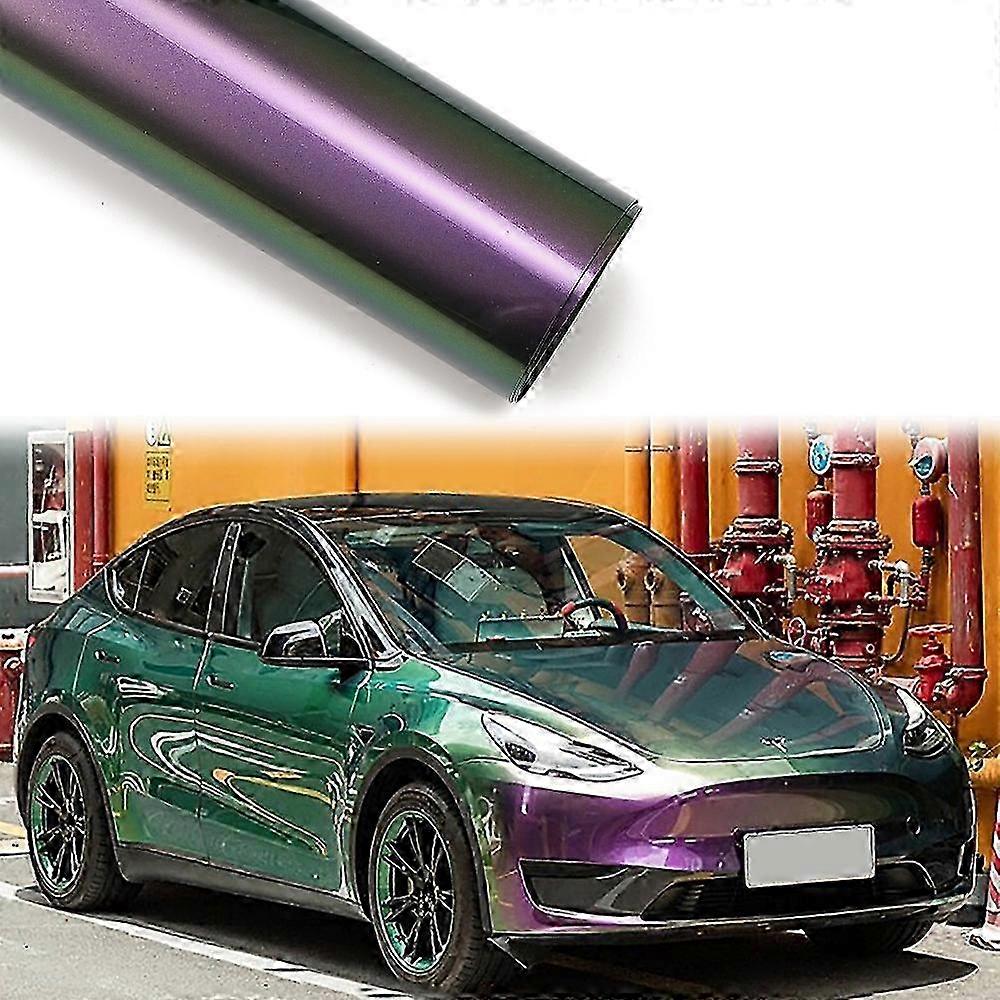 Glitter Car Film Purple and Green, Chameleon Car Wrap Film DIY Bubble-Free Vinyl Wrap Waterproof Decor, Air Release Films,75x152CM 2025