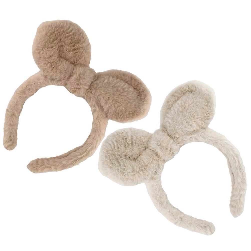 Adorable Bunny Ear Plush Hairband for Parties and Dress Up in Assorted Colors 2pcs Set
