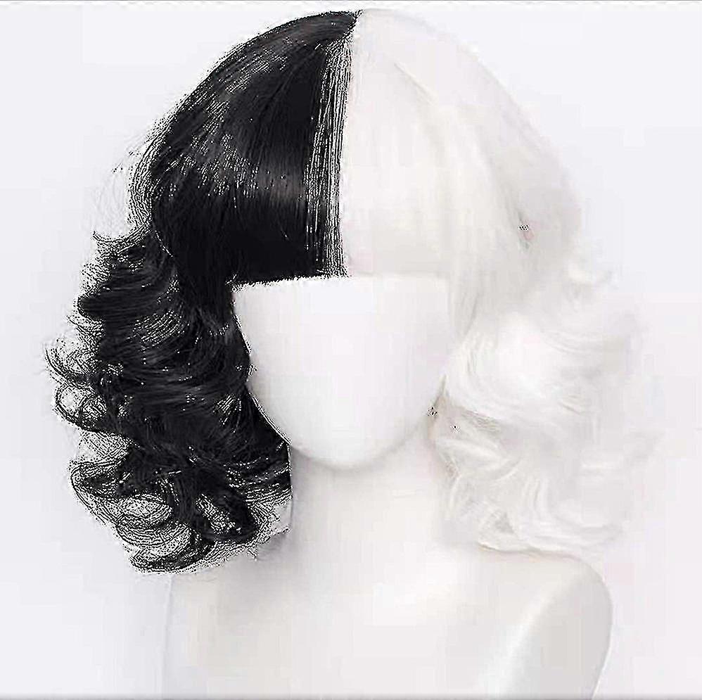 Movie 101 Dalmatians Black And White Witch Kuira Deville Dress Gloves Shawl Halloween Cosplay Costume Set -c