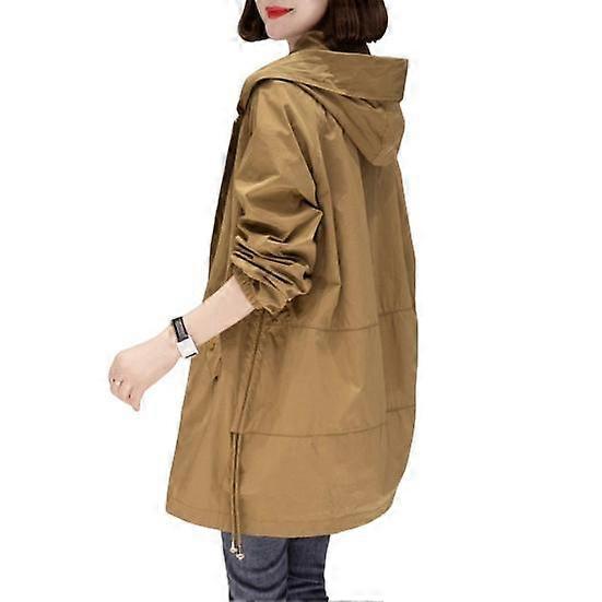 Fall Spring Women Coat Hooded Zip-up Long Sleeves Loose Cardigan Drawstring Mid Length Overcoat with Pockets Thin Daily Wear Work Outdoor Windbreaker