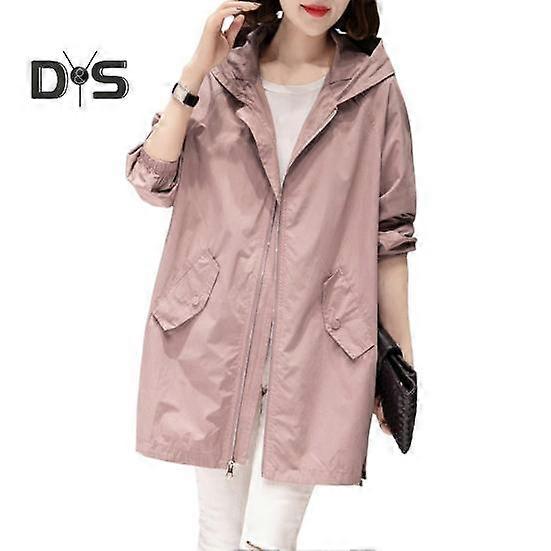 Fall Spring Women Coat Hooded Zip-up Long Sleeves Loose Cardigan Drawstring Mid Length Overcoat with Pockets Thin Daily Wear Work Outdoor Windbreaker
