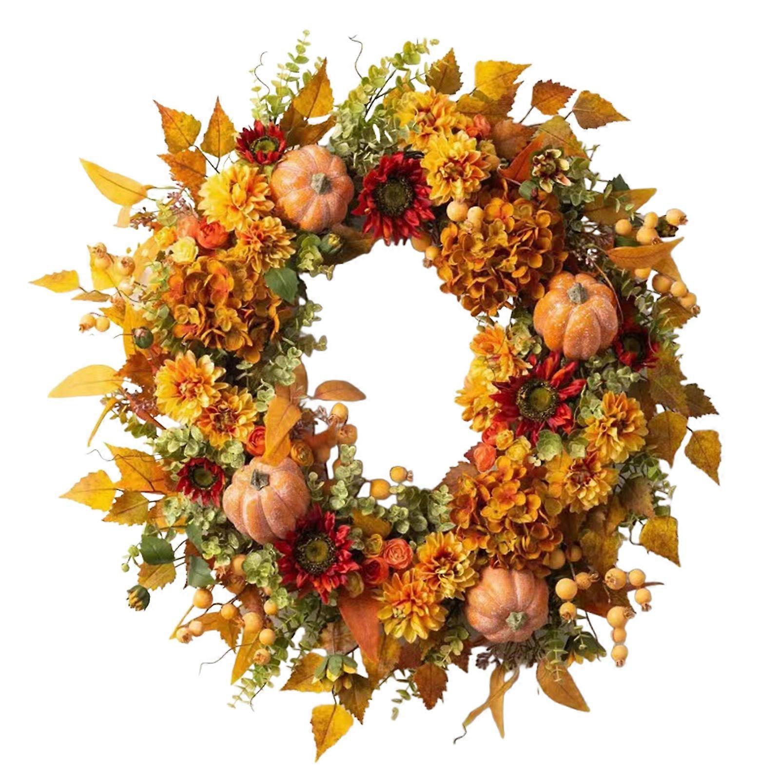 Autumn Amaryllis Pumkins Fall Wreaths for Front Door Artificial Door Wreath for Thanksgiving Harvest Halloween Decorations Wall Window Party Wedding