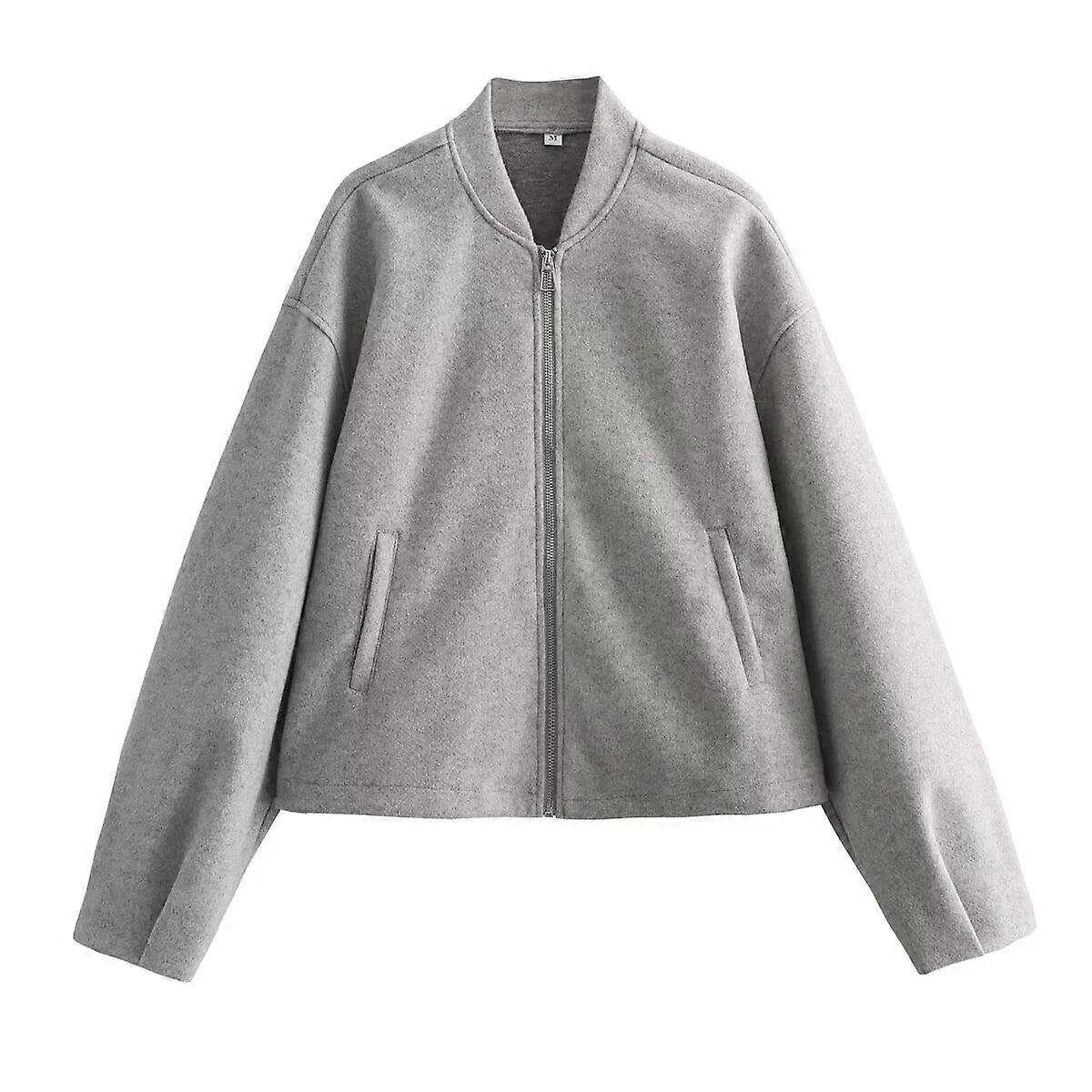 Autumn Outerwear Woman Classic Simple Solid Long Sleeve Zipper Bomber Jacket Casual Fashion Women Cropped Coat