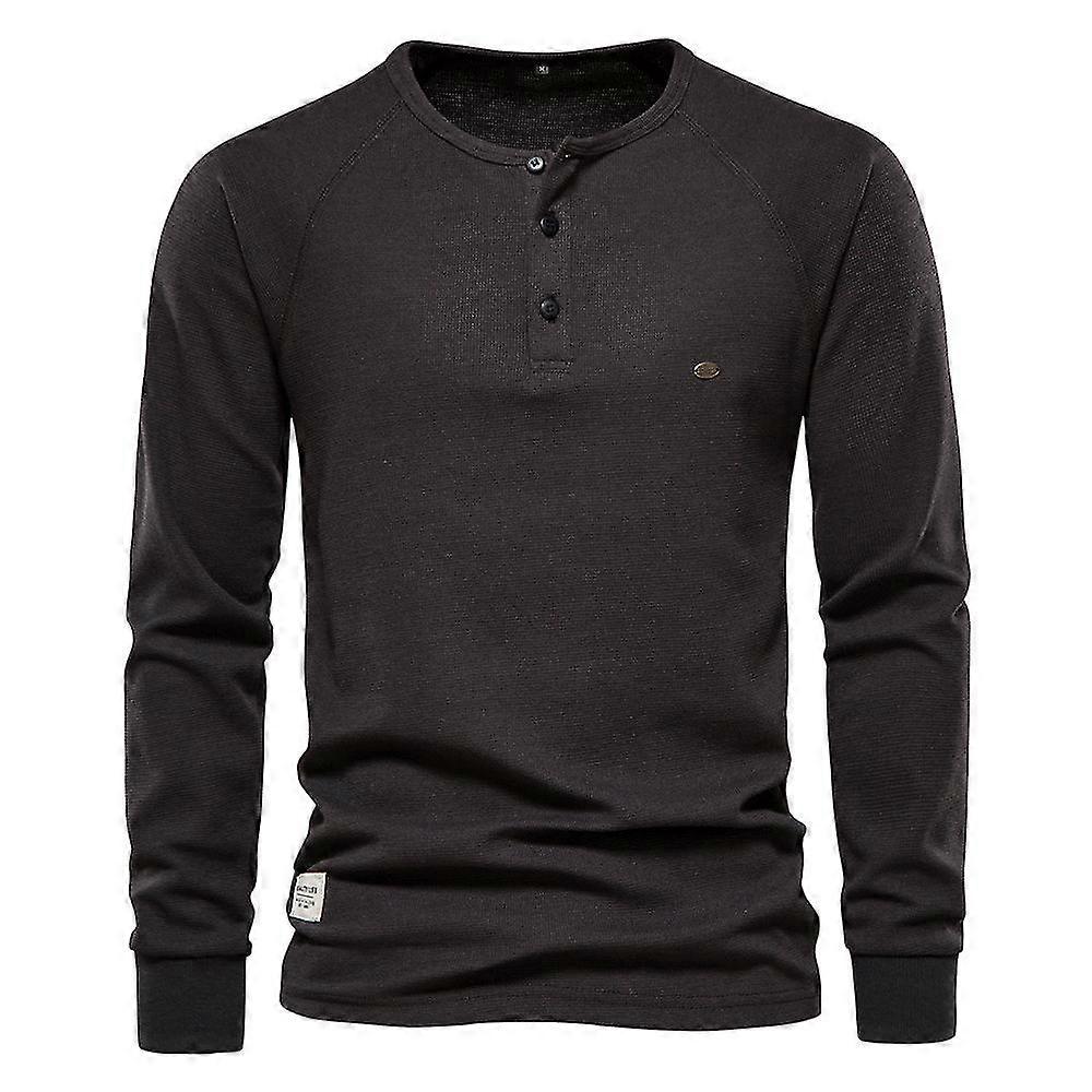 Autumn And Winter Men's Undershirt Henry Collar Long Sleeve Waffle T-Shirt Men's Solid Color Men's T-Shirt