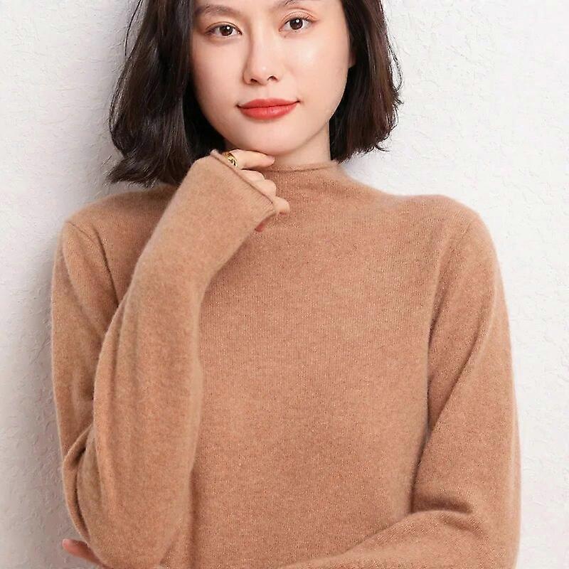 Autumn And Winter New Women's Cashmere Sweater Half High Neck Curled 100% Wool Loose Knit Versatile Exquisite Fashion Sweater