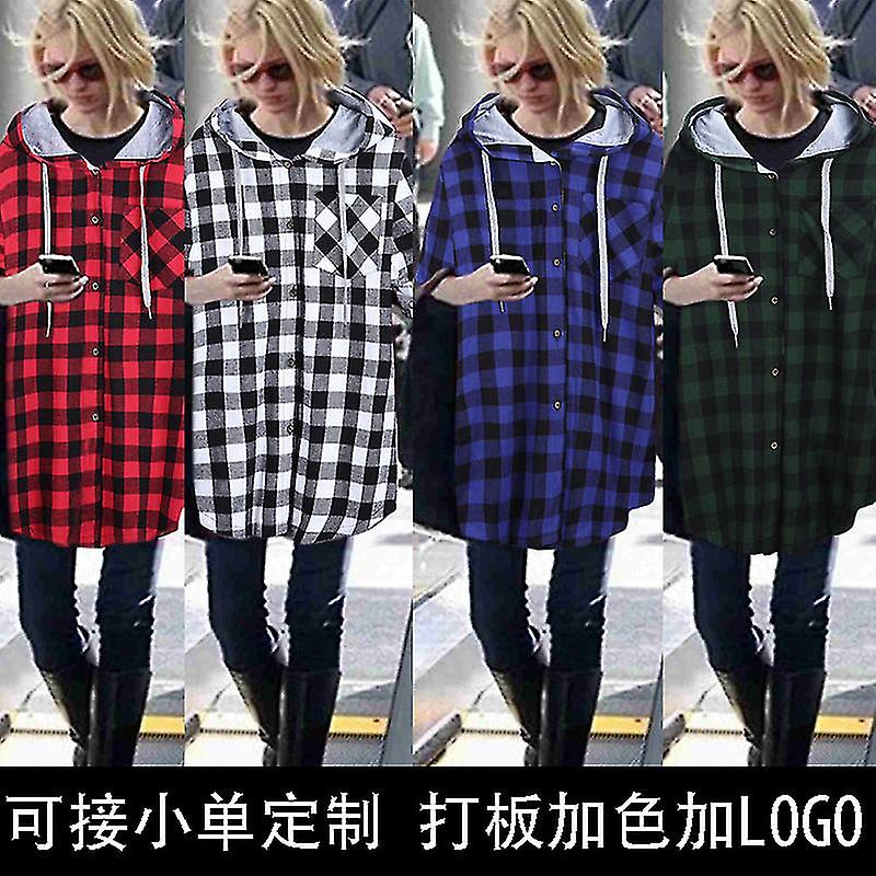 Autumn And Winter New Fat Mm Plus Size Women's Decoration Body Mid-length Plaid Hooded Cardigan Top Coat